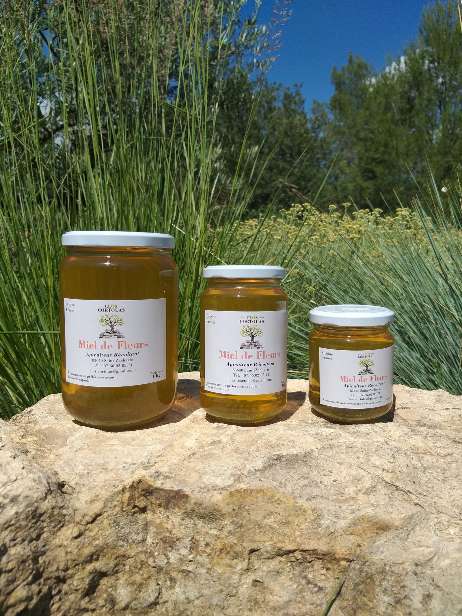 Les oliviers et le rucher sont implantés sur notre propriété et dans un périmètre proche, ce qui nous permet de suivre et de maîtriser chaque étape de la production, de la culture à la récolte.